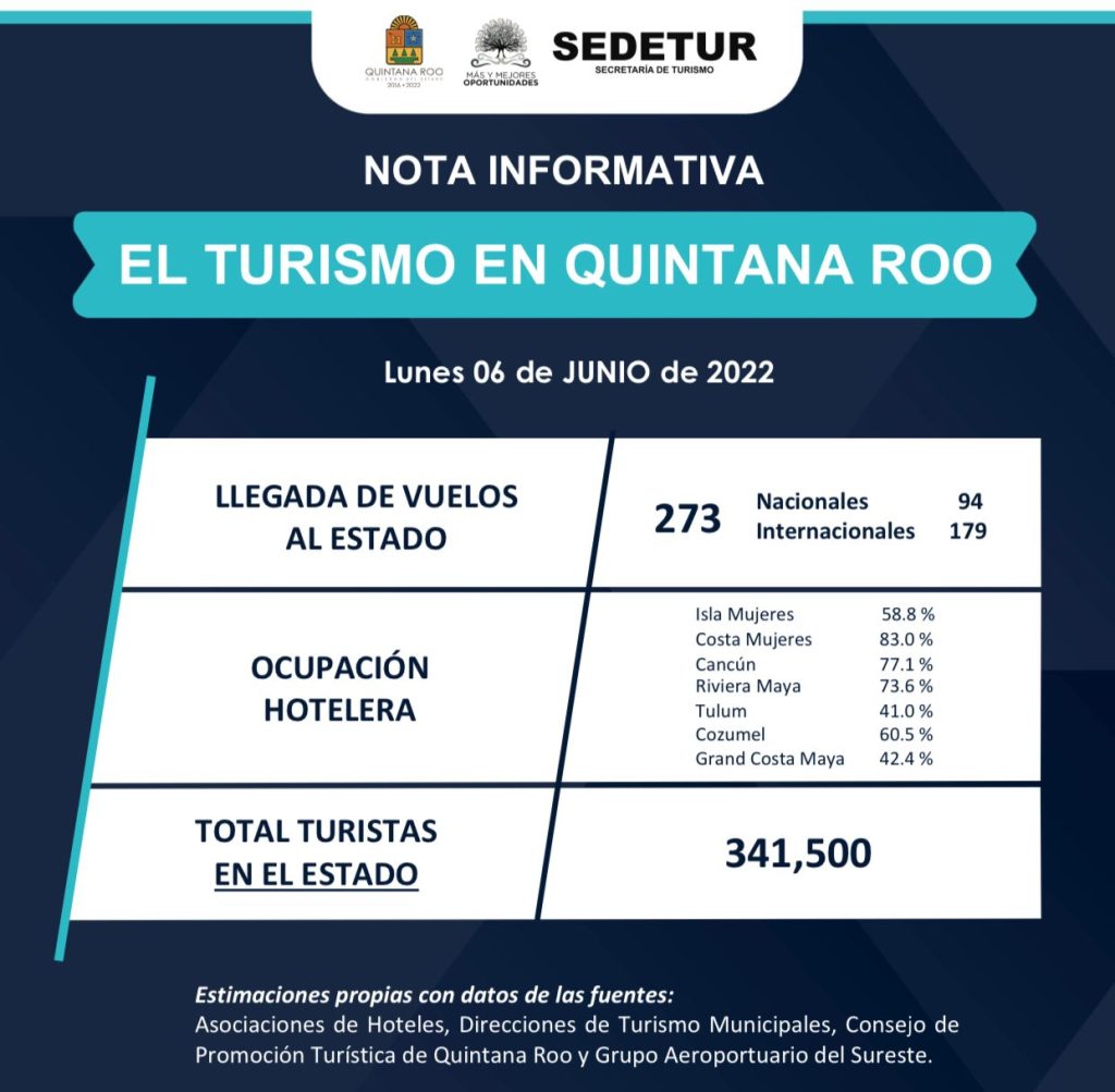 Al cierre de 2021, Quintana Roo tuvo una recuperación de más del 80% en su afluencia turística. En reportes del 2022 se están superando niveles registrados en 2019, un ejemplo de ello es lo registrado en el primer cuatrimestre del año, donde crecimos 2.4% con un total de 5.7 millones de turistas.
