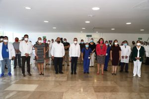 Cancún, Q. Roo, Jueves 28 de Enero de 2021, poderycrítica.- El gobernador Carlos Joaquín develó la máxima condecoración “Miguel Hidalgo”, placa otorgada al personal del Hospital General Regional No.17, del Instituto Mexicano del Seguro Social (IMSS), en reconocimiento a la labor humanitaria y el profesionalismo demostrado para salvar vidas ante la pandemia de la covid-19.