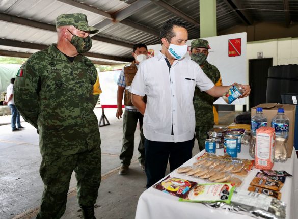 Cancún, Q. Roo, Jueves 22 de Octubre del 2020, poderycrítica.- En la Guarnición Militar de Cancún, el gobernador Carlos Joaquín dio hoy el banderazo para iniciar la entrega de insumos a familias afectadas por el huracán “Delta” y atender necesidades de más de 20 mil 300 quintanarroenses.