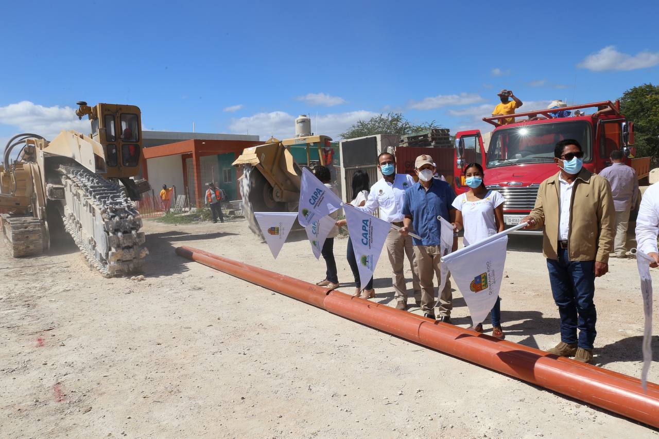 Mahahual, Q. Roo, Martes 02 de Febrero de 2021, poderycrítica.- El gobernador Carlos Joaquín encabezó el inicio de la inversión de recursos para la ejecución de la obra “Construcción del emisor a presión del cárcamo de rebombeo del fraccionamiento Arrecifes Kilómetro 55+000 a la Planta de tratamiento de Aguas Residuales de Mahahual”.
