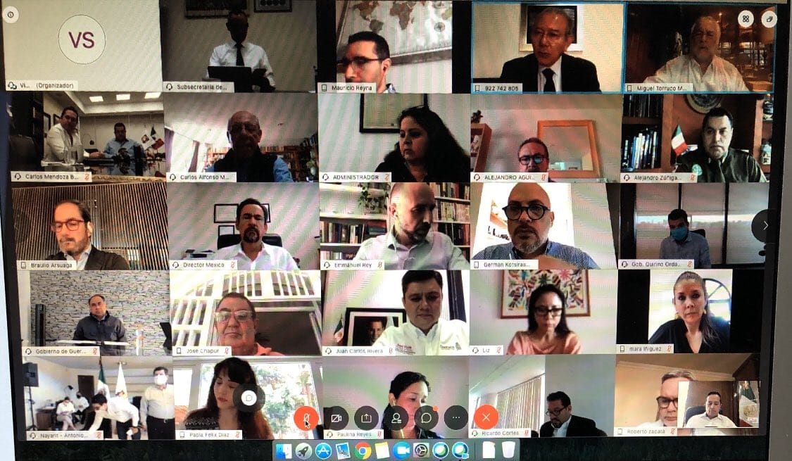 En la reunión virtual, en acatamiento a las medidas sanitarias de distanciamiento social generadas por el covid-19, participaron gobernadores de estados turísticos, secretarios del ramo, empresarios del sector y el titular de la SECTUR Miguel Torruco Marqués.