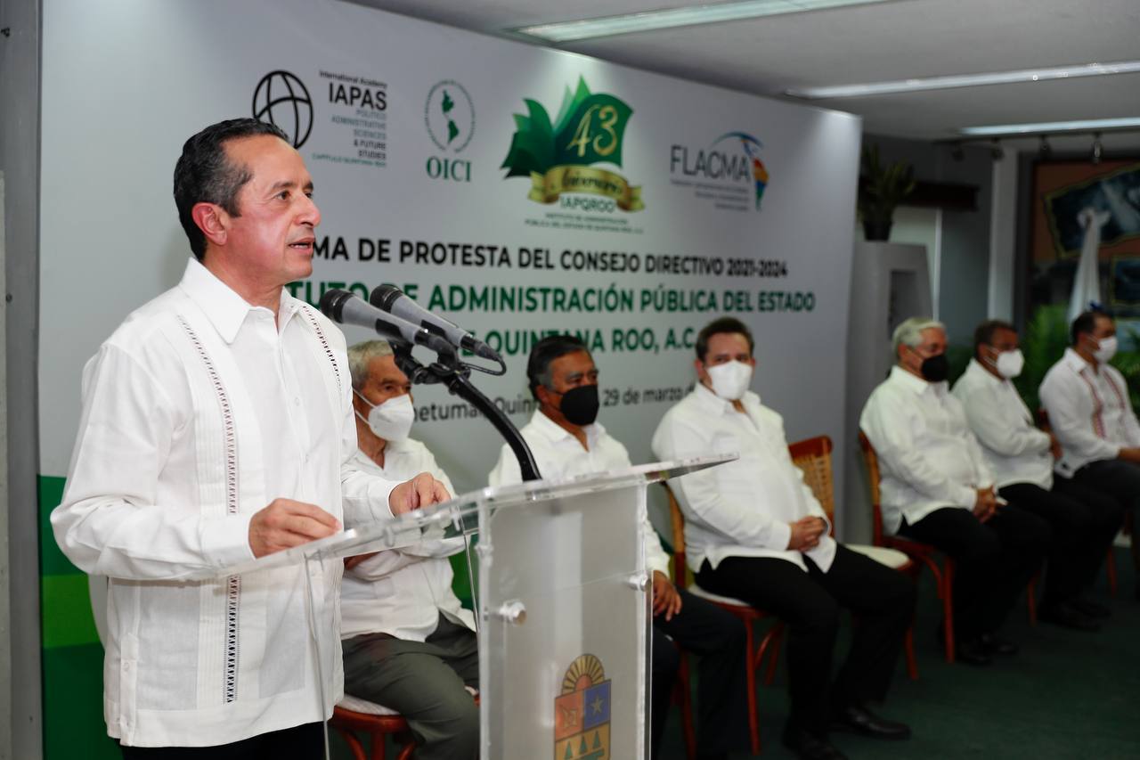 PODER Y CRÍTICA | REDACCIÓN | El gobernador Carlos Joaquín asistió hoy a la ceremonia de toma de protesta del Consejo Directivo 2021-2024 del Instituto de Administración Pública del Estado de Quintana Roo (IAPQROO).