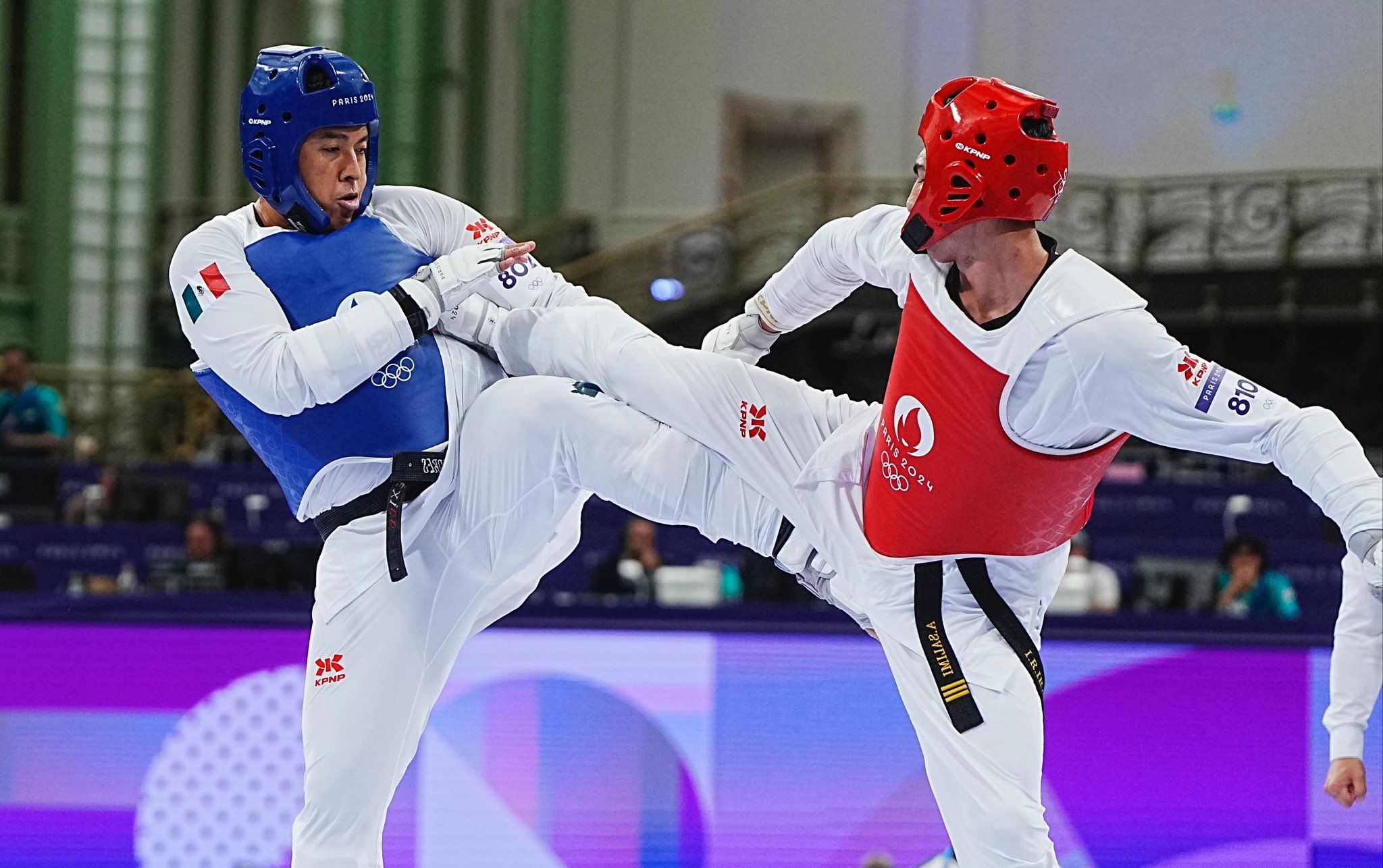 En cuartos de final, el atleta originario de Chetumal fue derrotado 1-2 después de que varias patadas a la cabeza por parte del iraní Arian Salimi lo desconcentraran del enfrentamiento, el cual tuvo lugar en el Grand Palais de la capital francesa.
