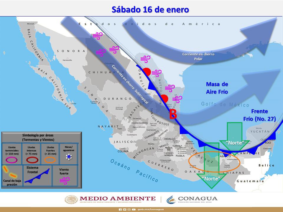 Martínez Ortega manifestó que continuaran las temperaturas frescas el fin de semana, ya que se espera que este sábado 16 comienza a influenciar el frente frío número 27, por lo que recomendamos a la población prevenir las enfermedades respiratorias con las niñas y niños, adultos mayores y enfermos crónicos, abrigándolos bien por la noche, madrugada y en las primeras horas del día.