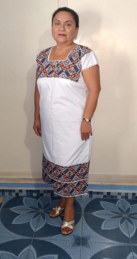 El certamen se desarrolló en la Dirección de Desarrollo Económico de Felipe Carrillo Puerto, con la presentación de un video que detalla las técnicas y modelos de trabajos de bordado a máquina de pedal antiguo, Xooc Chuuy (Hilo contado) y Ts´iib Chuuy (bordado a mano), la artesana fue la elegida por el jurado entre 18 participantes.