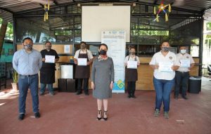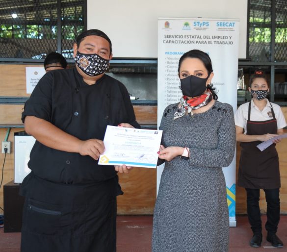 Posterior a ello, se realizó la clausura de los cursos de mesero con preparación de bebidas y mesero con preparación de alimentos, pertenecientes al Subprograma de Apoyo de Capacitación para la Empleabilidad, con una inversión de $28,800 pesos, se benefició a 8 personas con el objetivo de colocarse en un empleo formal dentro de la empresa BAHÍA CAFÉ en la ciudad de Chetumal.