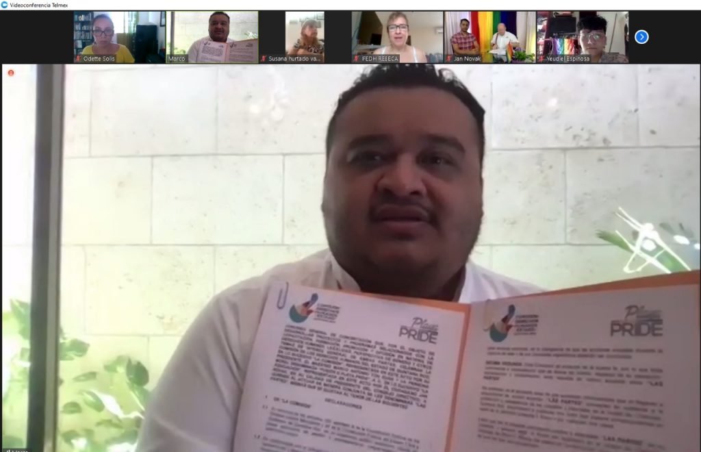Este reclamo tuvo lugar durante el evento virtual de la firma de convenio de colaboración entre la Comisión y dicha asociación civil, en el marco del mes del orgullo LGBTTTIQA+, con el propósito de conjugar esfuerzos y recursos disponibles para la materialización del diseño e implementación de mecanismos generales de colaboración, para desarrollar proyectos y programas relacionados con la capacitación, formación, promoción y difusión en materia de derechos humanos, legalidad, perspectiva de género y otros temas de interés general, en beneficio de las personas integrantes de la asociación, así como de la sociedad en general, buscando con ello el fortalecimiento de la cultura de los derechos humanos, la legalidad y la perspectiva de género en el Estado.