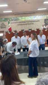 Minutos antes del registro de Barrera Concha, entregó sus documentos Cecilia Patrón Laviada y concluyó su registro oficial como candidata a la presidencia municipal de Mérida.