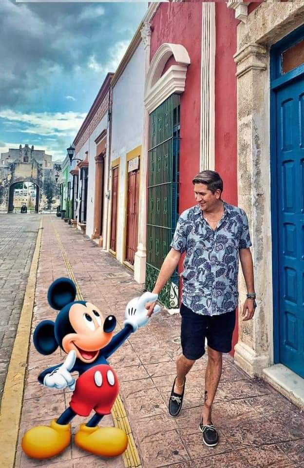 Campeche, Domingo 03 de Octubre de 2021, poderycrítica.- El ciudadano Ricardo Castro Rubio celebró el inicio del mes de la campechanía con fotografías creativas con personajes animados en varios puntos de la capital.