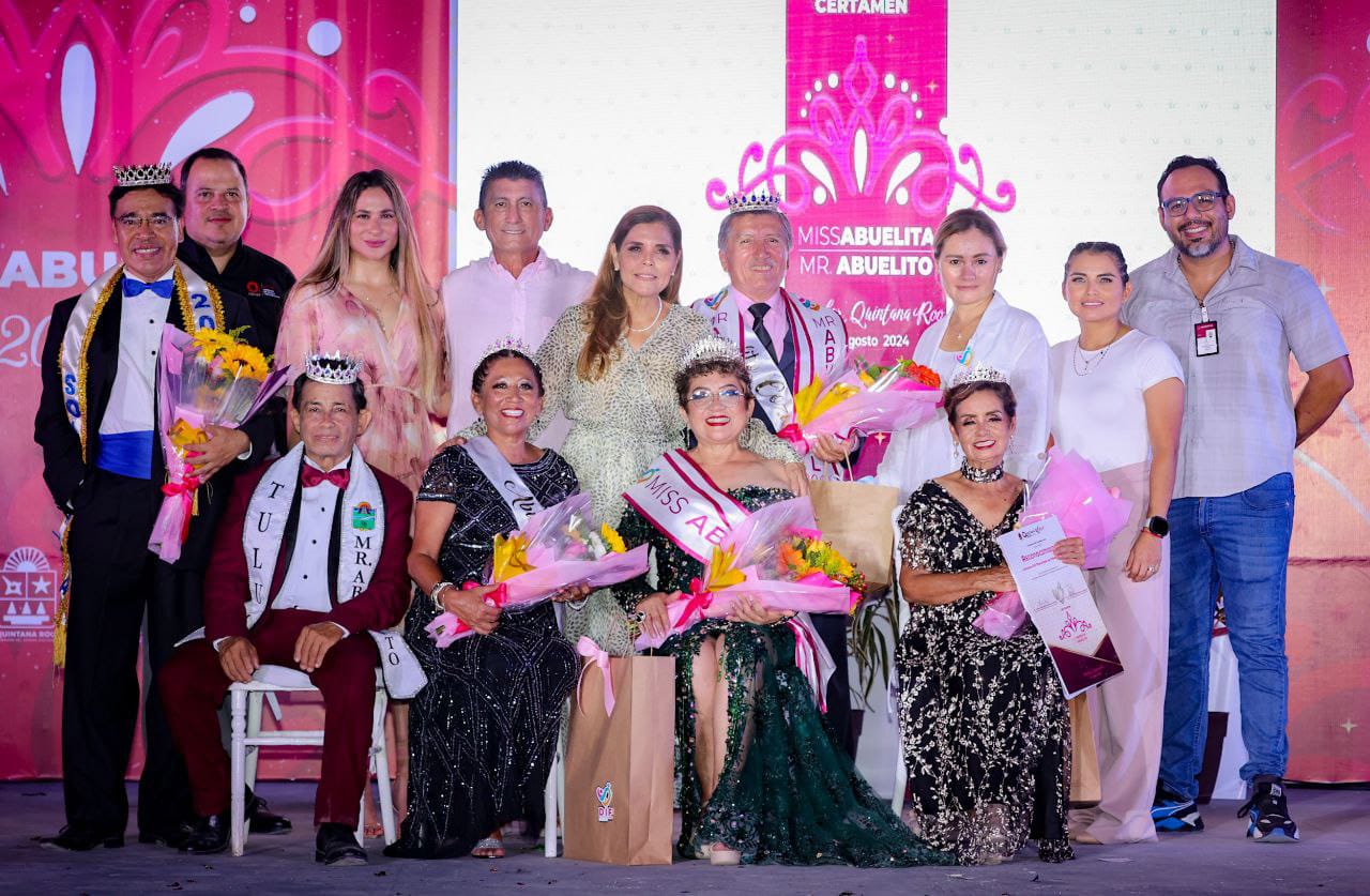 En el Certamen Miss Abuelita y Mr. Abuelito Quintana Roo 2024 resultaron ganadores del primer lugar, Amparo Buenfil Rodríguez del municipio de Bacalar y Tito Caamal Castro de Cozumel, respectivamente y fueron coronados por la presidenta honoraria del DIF estatal, Verónica Lezama Espinosa y el presidente municipal, José Alfredo Contreras Méndez.