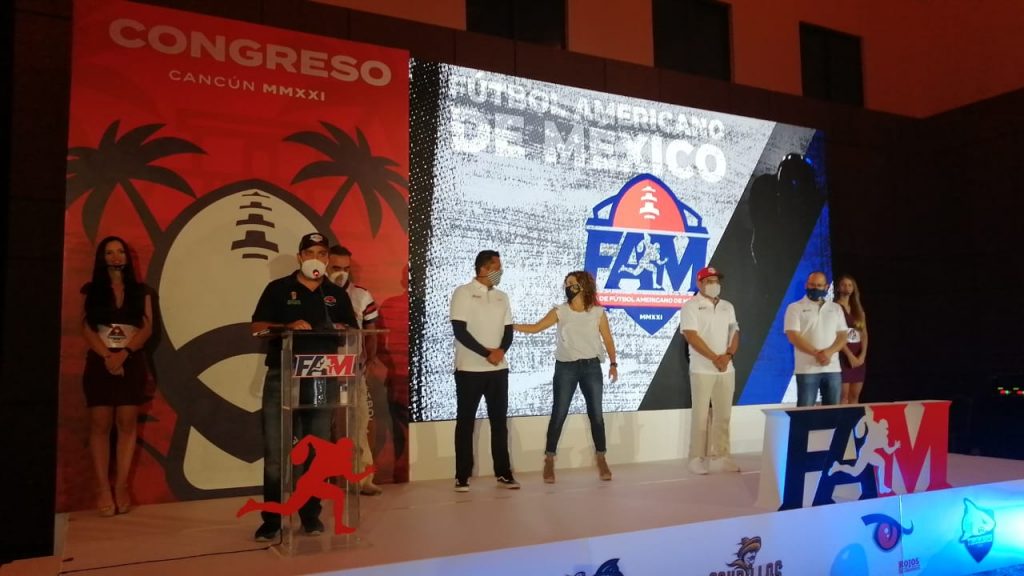 Cancún, Q. Roo, Domingo 04 de Octubre del 2020, poderycrítica.- Cancún fue sede del Congreso Anual de la Liga Profesional de Fútbol Americano de México, en el que se tuvo como platillo principal, la presentación del equipo representativo de Quintana Roo, los Tiburones de Cancún.