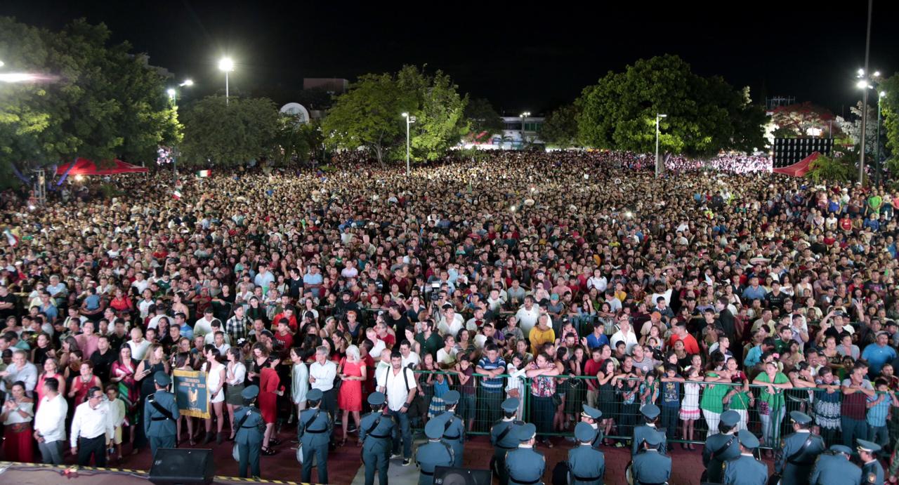 En ambiente familiar y lleno de patriotismo, Mara Lezama encabezó por primera vez el protocolo oficial y cívico del Grito de Independencia, ante más de 10 mil benitojuarenses quienes se dieron cita en la Plaza de la Reforma, la noche de este domingo, al tiempo que otros 8 mil disfrutaron la verbena popular y vendimia de antojitos mexicanos en las inmediaciones.