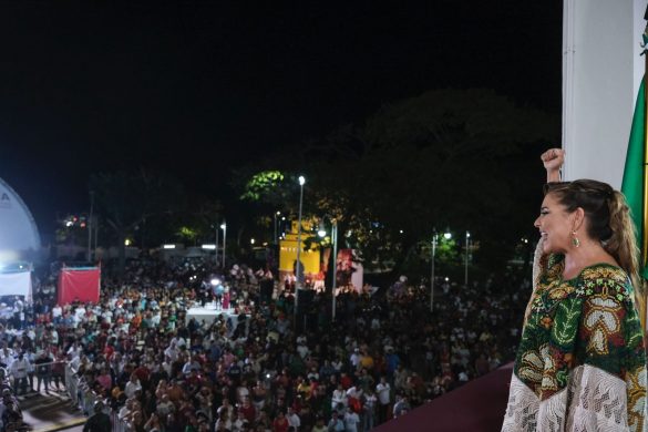 PODER Y CRÍTICA | REDACCIÓN | La gobernadora Mara Lezama Espinosa celebró con el pueblo una noche mexicana, conviviendo con miles de familias que disfrutaron de una verbena popular en la explanada de la Bandera para luego dar el tradicional Grito de Independencia desde el balcón central de Palacio de Gobierno.
