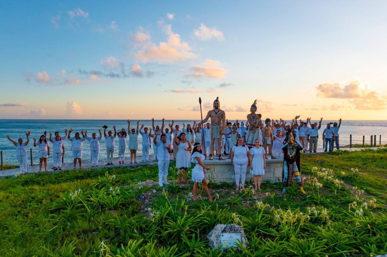 Vestidos de blanco y portando un caracol entre sus manos con los incipientes rayos de sol, una centena de participantes ofrecieron una ofrenda floral de pétalos de rosa blancos a la diosa Ixchel (diosa de la luna y la fertilidad); enseguida tocaron los caracoles en una danza maya de fuego para concluir con la realización de un lazo humano ya que para el Gobierno que encabeza la presidenta municipal, Atenea Gómez Ricalde, el fortalecimiento y preservación de las tradiciones es fundamental.