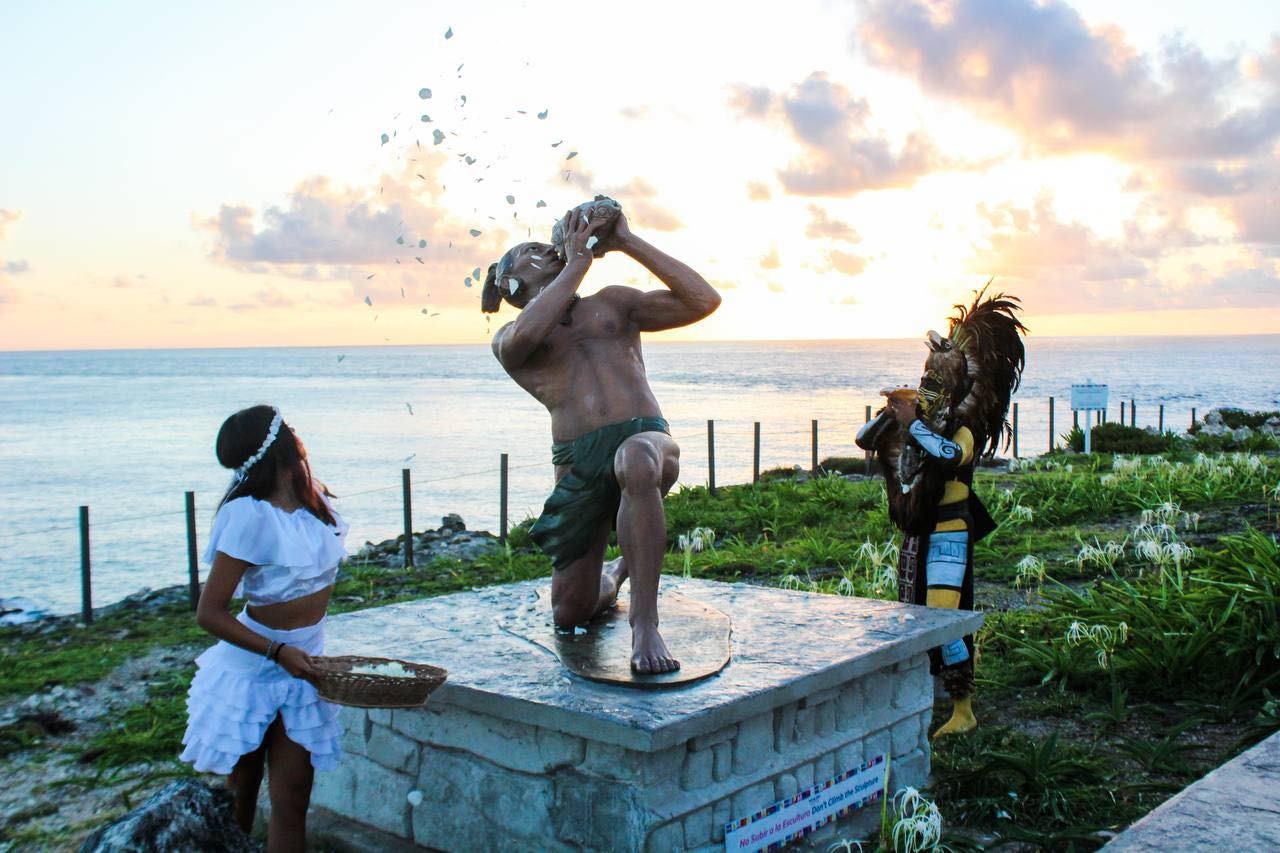 Poder y Crítica | Redacción | Los primeros y cálidos rayos de sol en Punta Sur fueron testigos este día de la tradicional ceremonia maya del sonido de los caracoles en víspera del Día Mundial de la Paz a celebrarse el próximo 21 de septiembre en todo el mundo y en la que participó en representación de la presidenta municipal, Atenea Gómez Ricalde, la presidenta honoraria del Sistema para el Desarrollo Integral de la Familia (DIF) de Isla Mujeres, Minelly Ricalde Magaña, directores del Ayuntamiento, integrantes del Cabildo y turistas.