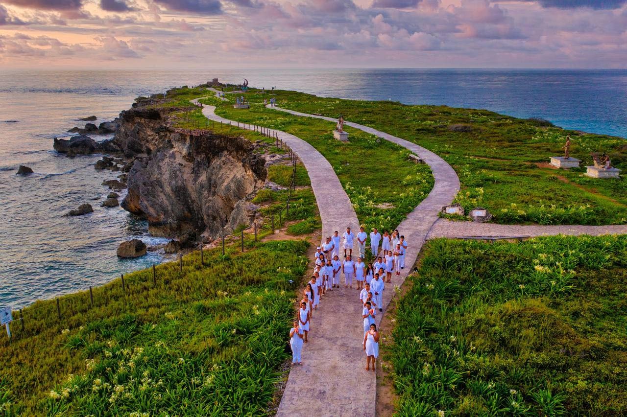 En ese sentido, el director del Sistema para el Desarrollo Integral de la Familia (DIF) de Isla Mujeres, Carlos José Osorio Magaña, explicó que se trata de una ceremonia que se realiza de manera simultánea en los once municipios del estado al salir los primeros rayos de sol, por ello, los participantes realizaron una caminata por los senderos de Punta Sur y depositaron pétalos de rosa en las esculturas a la diosa Ixchel, ruinas de la diosa Ixchel y el Caracolero para concluir con un lazo humano en las dos esculturas dedicadas a la Familia.