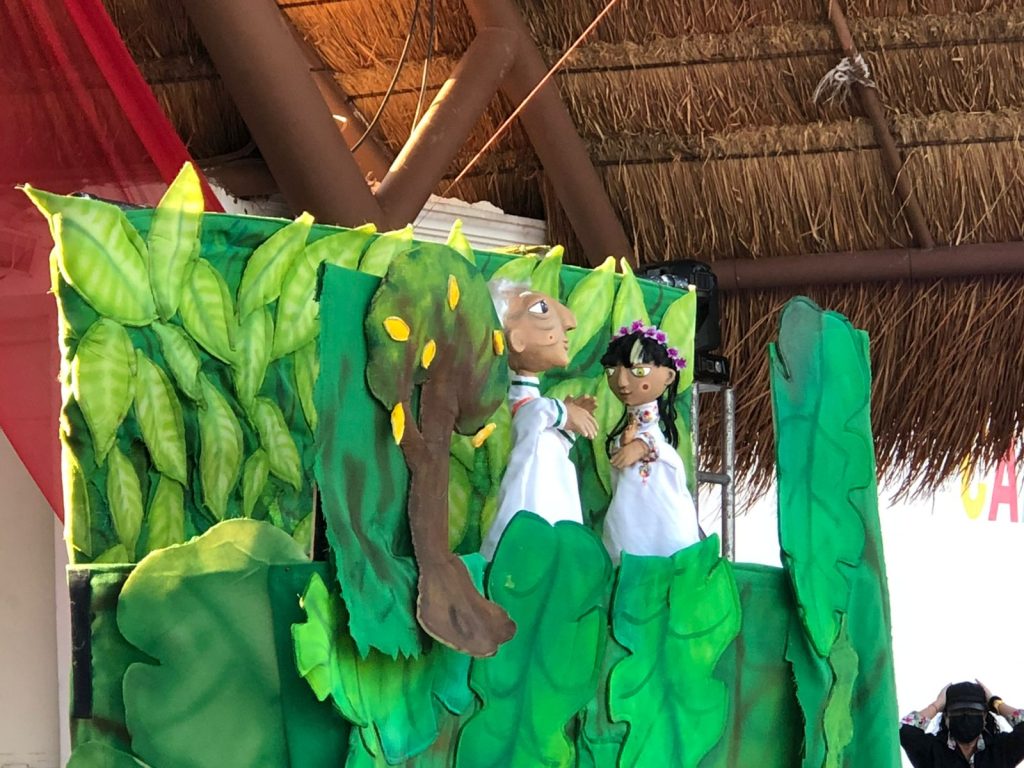 Más tarde, alrededor de las 17:00 horas, decenas de familias se apostaron en el Parque de las Palapas, donde pudieron disfrutar de la VI Edición del Movimiento Artístico Cancún, bajo el lema: “Hagamos ruido por el teatro”, por un promedio de 5 horas de espectáculos diversos, como: Ramón Bravo, intérprete infantil de canciones de Cri-Cri; Leticia Flores, escritora y cuenta cuentos; Carlos Mena, poeta; Araceli Pszemisrower, titiritera y teatro de objetos; y Daniel Gallo, actor y clown, cuenta cuentos.