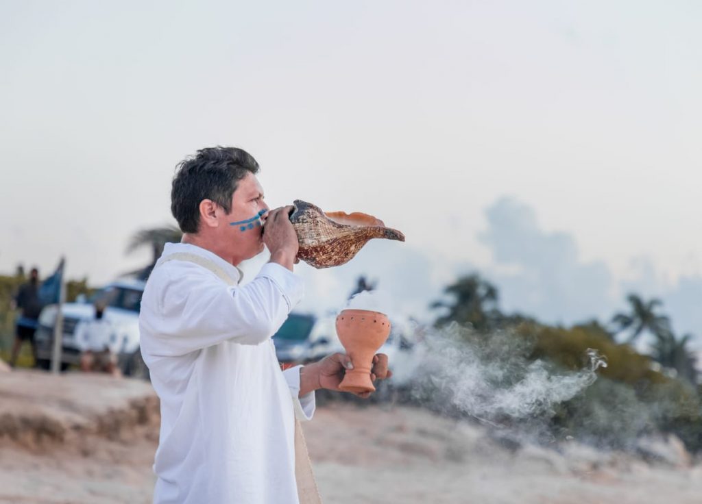 Tulum, Q. Roo, Lunes 21 de septiembre de 2020, poderycrítica.- El Día Internacional de la Paz fue celebrado en Tulum con una ceremonia maya en Punta Piedra con la participación del Presidente Municipal Víctor Mas Tah y su esposa Celia Aguilar Mas, Presidenta honoraria del Sistema municipal para el Desarrollo, quien compartió algunas reflexiones en torno a los cambios que trae consigo vivir en un ambiente de paz y dentro de una sociedad tolerante y armoniosa.
