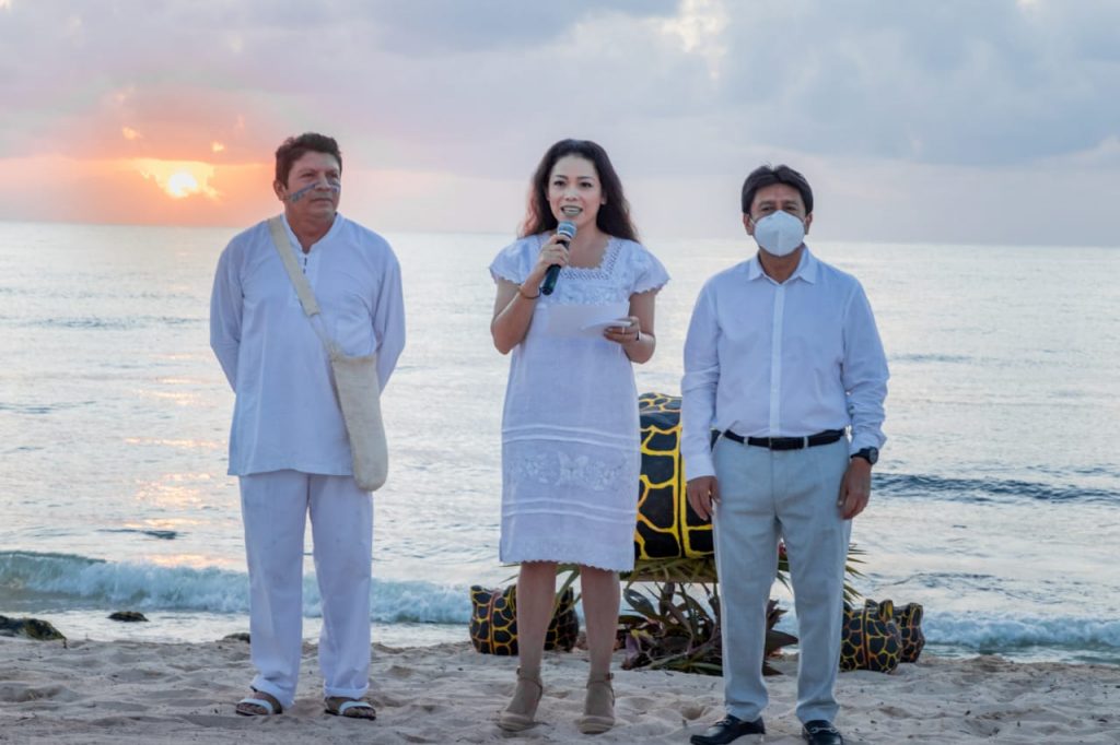 La ceremonia se desarrolló en el marco del amanecer de este 21 de septiembre, con los primeros rayos del sol, con un mar tranquilo en una de las playas más visitadas por la población y ahí, la presidenta honoraria del DIF municipal, Celia Aguilar Mas, dijo que “para vivir en paz, debo no solo desearlo sino crear ese ambiente de paz”.