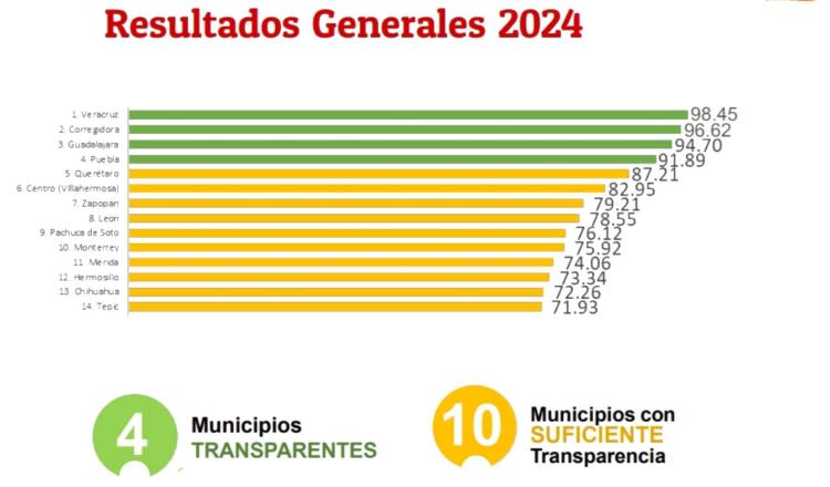 - Municipios transparentes : Veracruz lidera esta categoría con 98.45 puntos sobre 100.