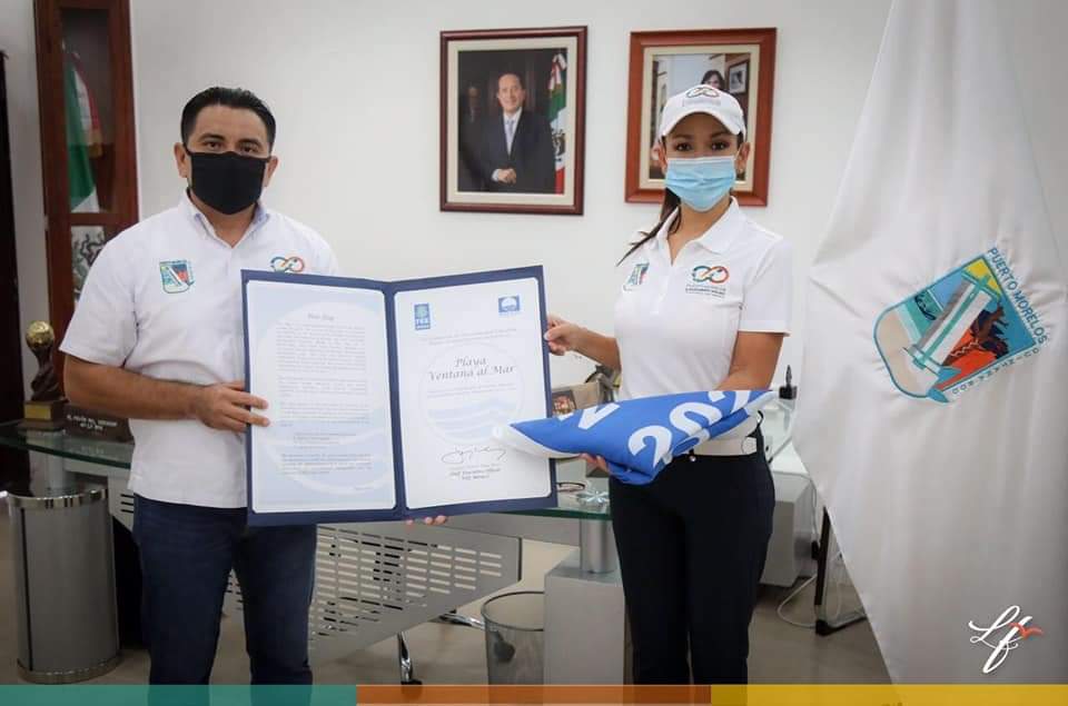 Puerto Morelos, Q. Roo, Martes 25 de Agosto de 2020, poderycrítica.- La presidenta municipal, Laura Fernández Piña, recibió el certificado y el estandarte “Blue Flag”, que por segundo año consecutivo ondeará en la Ventana al Mar y que reafirma el compromiso de Puerto Morelos de proteger el medio ambiente, al basar su desarrollo y crecimiento en apego a lineamientos de sostenibilidad.