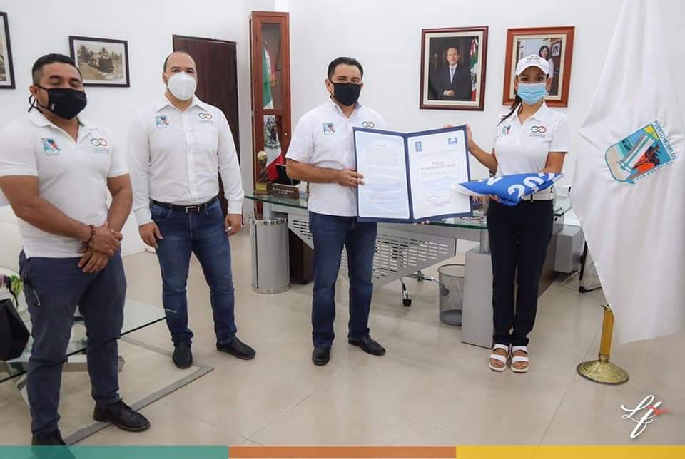 Acompañada por el director municipal de la Zona Federal Marítimo Terrestre (Zofemat), Enrique Ruiz Dzul, quien le entregó el distintivo que otorga la Fundación para la Educación Ambiental (FEE por sus siglas en inglés) Capítulo México, Laura Fernández indicó que este es un reconocimiento al esfuerzo que mucha gente ha realizado.
