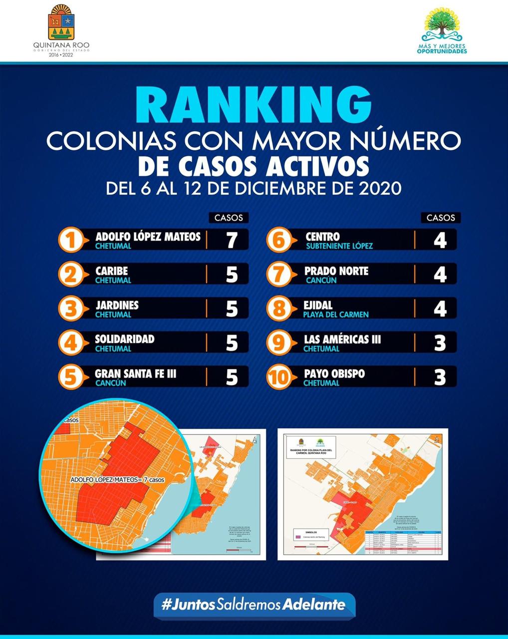 1.- La colonia Adolfo López Mateos en Chetumal con 07 casos activos.