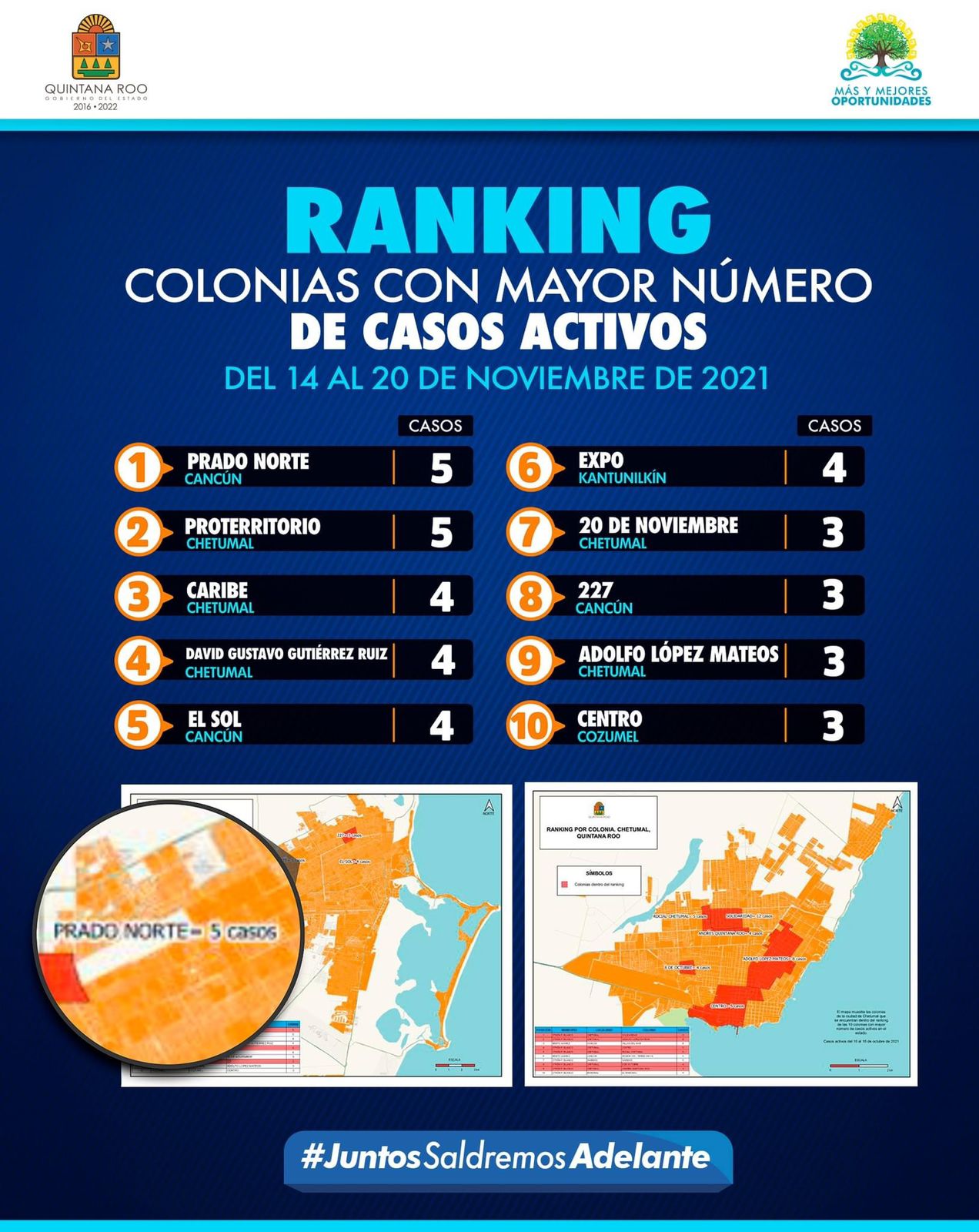 - Colonia 20 de Noviembre en Chetumal con 3 casos activos de COVID-19.
