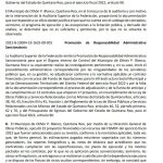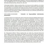 Por ello la Auditoría Superior de la Federación emite la Promoción de Responsabilidad Administrativa Sancionatoria para que el Órgano Interno de Control del Municipio de Othón P. Blanco, Quintana Roo o su equivalente realice las investigaciones pertinentes y, en su caso, inicie el procedimiento administrativo correspondiente por las irregularidades de los servidores públicos que, en su gestión, no presentaron la documentación de los expedientes técnicos unitarios de 10 proyectos financiados con recursos del Fondo de Aportaciones para la Infraestructura Social Municipal y de las Demarcaciones Territoriales del Distrito Federal del ejercicio fiscal 2022 conforme a la normativa aplicable, en incumplimiento de la Ley de Obras Públicas y Servicios