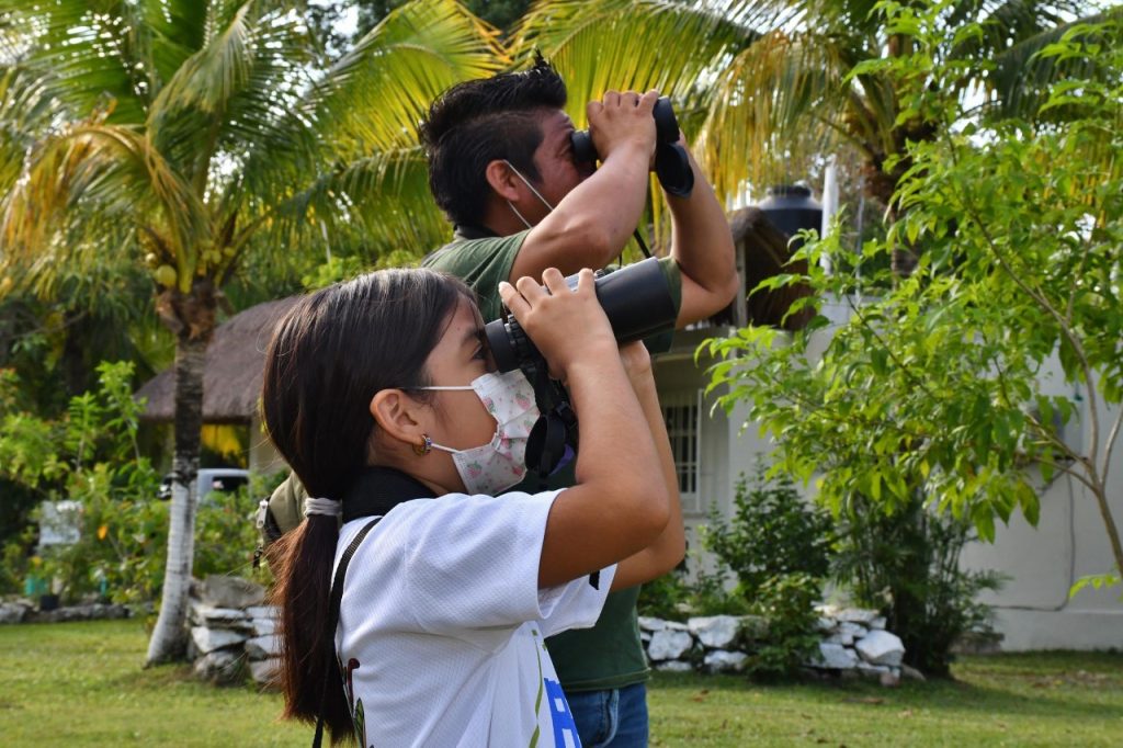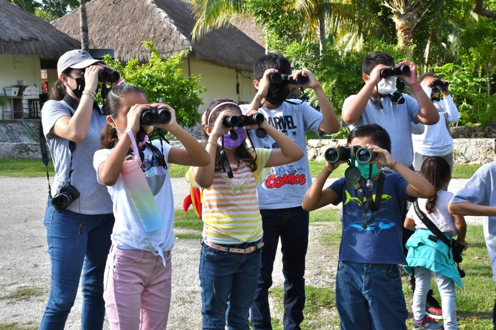 En esta “pajareada” los niños lograron el registro de 13 especies, entre las que se encuentran el Perico Pecho Sucio, Tangara Cabeza Rayada y Papamoscas Gritón, con el apoyo de los biólogos Noel Rivas Camo y Antonio Chalé Chim, que les enseñan a utilizar los binoculares y a identificar a las aves por su canto y características físicas.