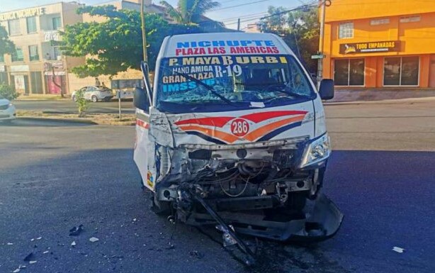 Cancún, Q. Roo, martes 06 de julio de 2021, poderycrítica.- Un duro encontronazo entre una urvan de la Ruta-19 con número económico 286 y una camioneta blanca, marca Ford, tipo Lob, se registró pasadas las 7:00 de la mañana en el cruce de las avenidas la Luna y Nichupte.