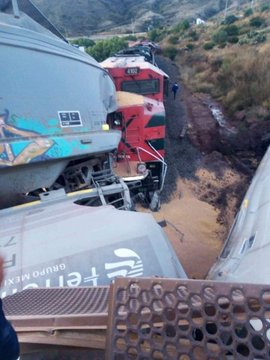 La mañana de este miércoles dos trenes chocaron de frente en la altura del fraccionamiento Tahona en Zacatecas, provocando daños en una vivienda y dejando cinco personas lesionadas.