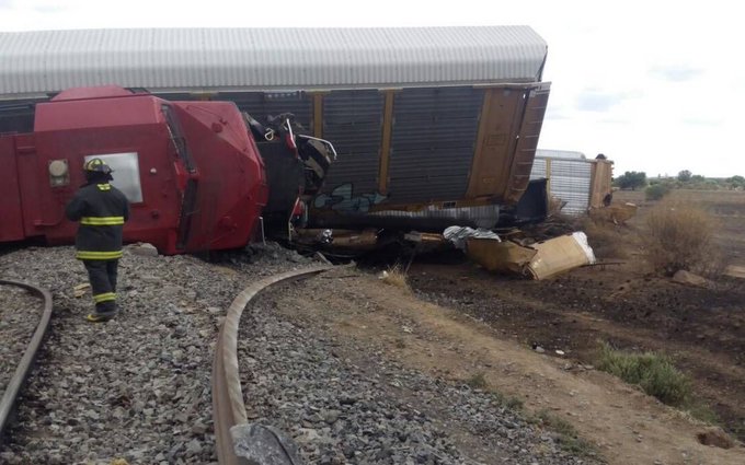 El impacto provocó que dos vagones quedaran cruzados en medio de la vía, además se introdujeron a una casa habitación y causar severos daños ya que las ruedas de estos terminaron completamente dentro de la casa; además, se derramó la carga de maíz que transportaban.
