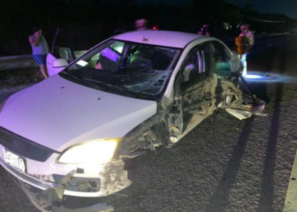 Este automóvil, un Ford Focus blanco, avanzaba por el tramo Tulum-Felipe Carrillo Puerto de esta vía, en el kilómetro 224+500, a eso de la 1:30 de la madrugada, cuando invadió su carril un Jeep Wrangler, con el que acabaron estrellados.