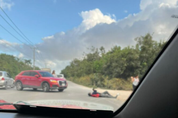 Tras el incidente, se pudo observar al hombre tendido sobre el pavimento, quien, con el celular en mano, esperaba la llegada de atención médica.