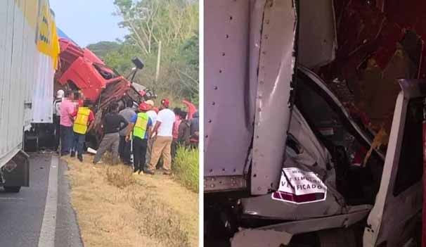 PODER Y CRÍTICA | REDACCIÓN | Un trágico accidente ocurrió en la carretera federal Córdoba-Veracruz, tramo Paso del Toro-La Tinaja, en el municipio de Cotaxtla, donde un tráiler cargado con gallinaza chocó de frente contra una camioneta doble remolque de la tienda departamental Coppel. El impacto fue tan fuerte que el tráiler se volcó y la cabina quedó encaramada en la unidad doble remolque. Desafortunadamente, dos personas perdieron la vida en este accidente.