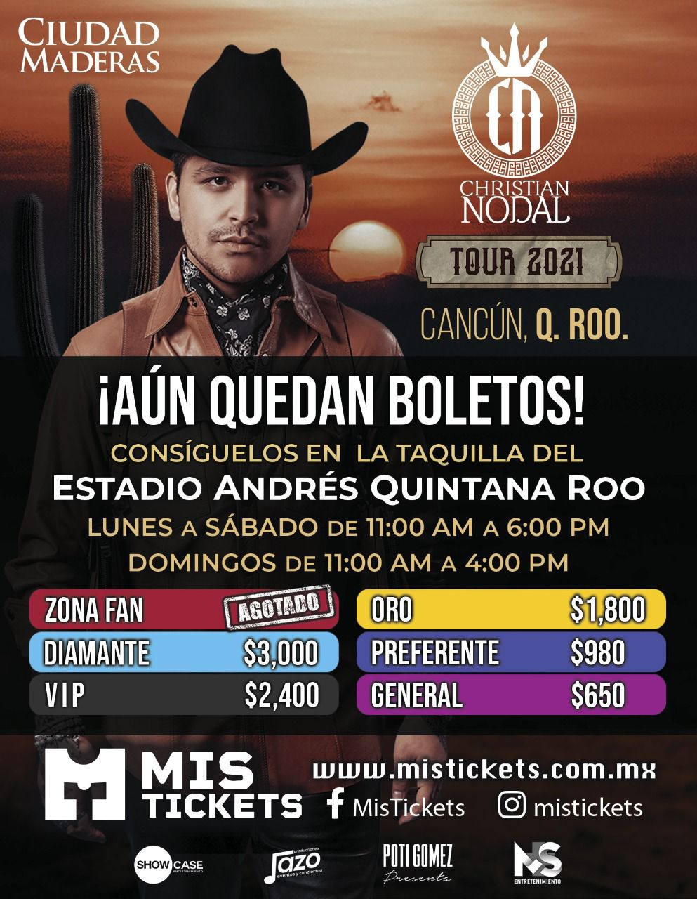 Sin embargo, aún estas a tiempo de comprar tu boleto para disfrutar del grandioso show que Christian Nodal le tiene preparado al público cancunense este 30 de octubre del 2021 en el estadio Andrés Quintana Roo.