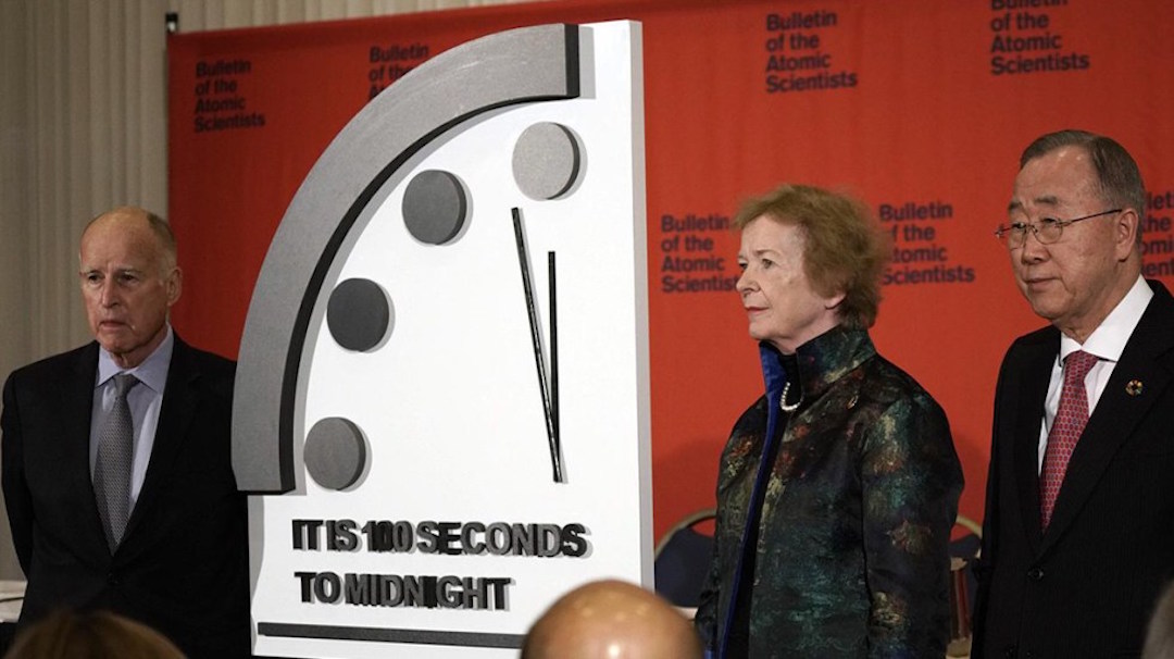 Estados Unidos, 24 de enero; poderycritica.-El llamado “Reloj del Apocalipsis” que ilustra la gravedad de los riesgos que enfrenta la humanidad, avanzó en el último año 20 segundos y se colocó a solo 100 de la medianoche, el punto de más alta alarma desde su creación en 1947.