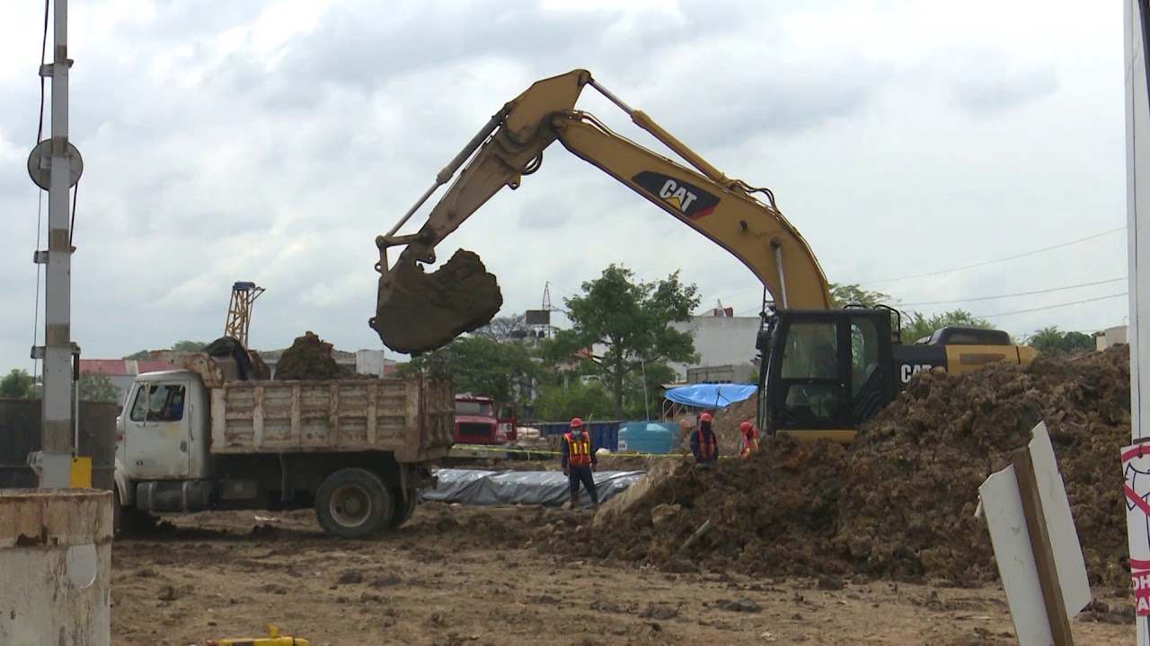 En la zona de la obra se pueden observar montañas de tierra arcillosa que se ha extraído de la perforación, pues el terreno es muy pantanoso, al momento se han colocado 25 pilotes.