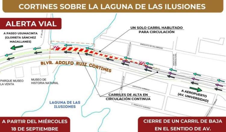El cierre afectará el tramo que va en dirección de la avenida Universidad hacia Paseo Tabasco, entre la colonia Magisterial y el Paseo de las Ilusiones.