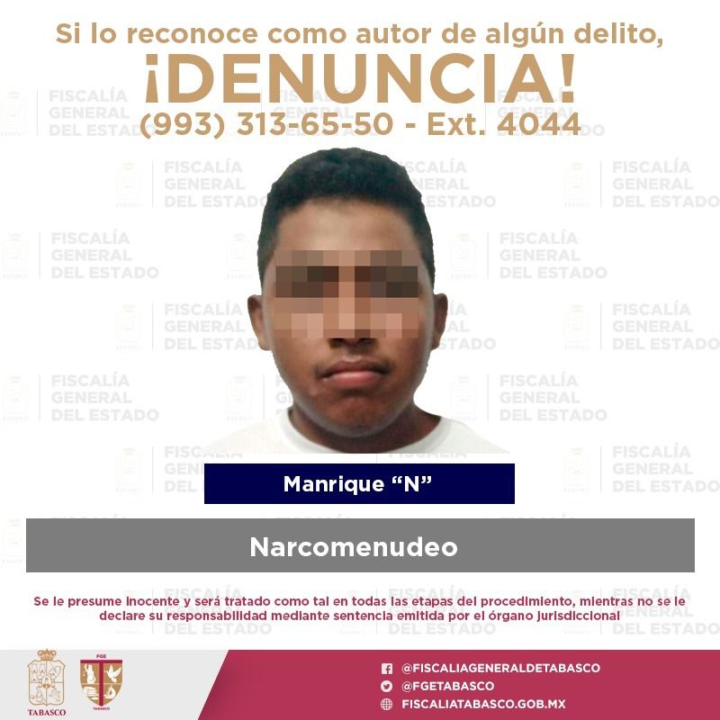Finalmente, se aprehendió a Manrique “N”, por su posible responsabilidad penal en la comisión de delitos contra la salud, en su modalidad de narcomenudeo, en la variante de posesión de narcótico, cometido en agravio de la sociedad. Los hechos son investigados por la Vicefiscalía de Delitos de Alto Impacto.