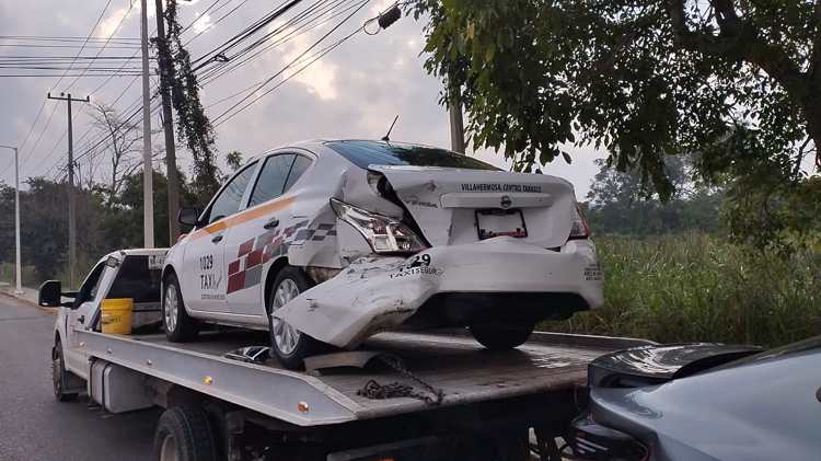PODER Y CRÍTICA | REDACCIÓN | En las primeras horas de este lunes, se registró un aparatoso accidente en el cruce de las vías Adolfo Ruiz Cortines y el periférico Carlos Pellicer Cámara, a la altura de una reconocida plaza comercial. El incidente involucró a cinco automovilistas, entre ellos dos del transporte público: un taxi con el número económico 1029 y una combi de la ruta 1539 Ruiz Cortines Frigorífico, junto con tres vehículos particulares.