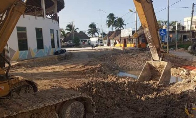 La autoridad de Chiquilá, Joel Pino Álvarez, agregó que la empresa encargada de realizar estos trabajos mantiene el área de trabajo, totalmente desatendida, representando un serio peligro para los peatones y, con las lluvias, toda la zona se ha convertido en un lodazal.