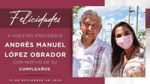 Cancún, Q. Roo, Viernes 13 de Noviembre del 2020, poderycrítica.- Con motivo de su cumpleaños, la clase política de Quintana Roo felicitó al Presidente Andrés Manuel López Obrador.