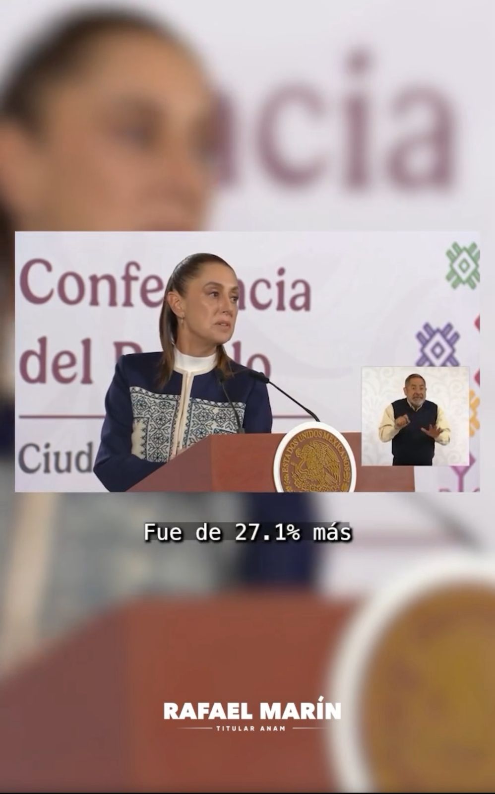 Sheinbaum señaló que este resultado es reflejo del trabajo encabezado por Rafael Marín en la ANAM, así como del esfuerzo coordinado del Gobierno de México para fortalecer la transparencia, el orden y la eficiencia en los sistemas aduaneros del país.