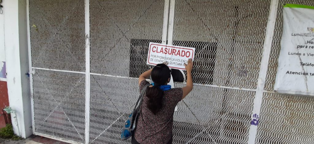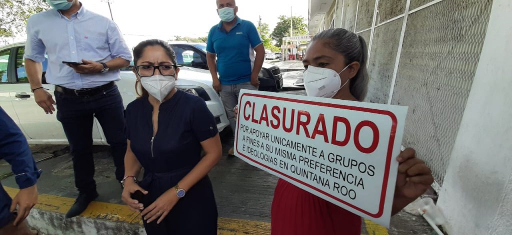 Chetumal, Q. Roo, lunes 11 de enero de 2021, poderycrítica.- Gabriela Santana Duarte quien representa a Iniciativa México, acompañada de grupos Provida clausuraron de manera simbólica las instalaciones de la Comisión de los Derechos Humanos en Chetumal, esto para manifestar su desacuerdo por el apoyo que se ha brindado por este organismo al grupo de feministas que tienen tomadas las instalaciones del Congreso desde hace mas de un mes y medio. Indicaron que solicitarán juicio político en contra del ombudsman quintanarroense Marco Antonio Toh Euán.