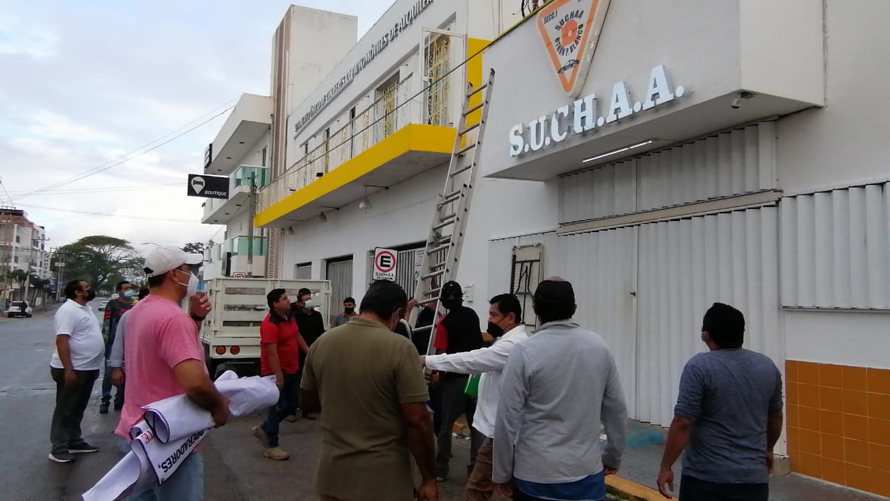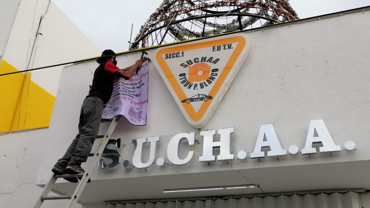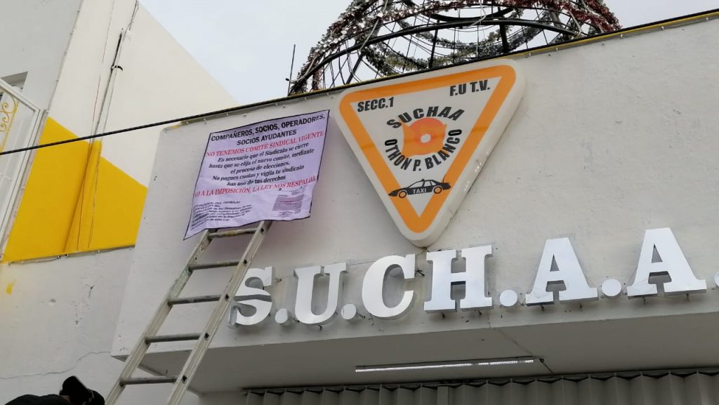 Chetumal, Q. Roo, lunes 11 de enero de 2021, poderycrítica.- Socios del Sindicato Único de Chóferes de Automóviles de Alquiler (Suchaa), en Chetumal, clausuraron de manera simbólica las instalaciones, debido a que el actual dirigente antepone como pretexto la pandemia para no soltar la administración.