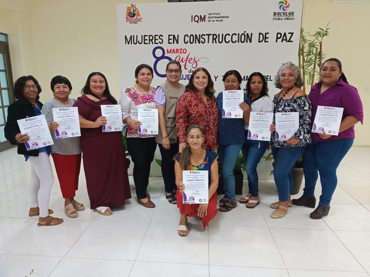 PODER Y CRÍTICA | REDACCIÓN | El Instituto Quintanarroense de la Mujer continúa implementando una cultura de paz aportando al bienestar común y al ejercicio pleno de los derechos, por lo que, se clausuraron los talleres “Mujeres en la Construcción de la Paz”, en los municipios de Bacalar y Puerto Morelos, con una gran participación.