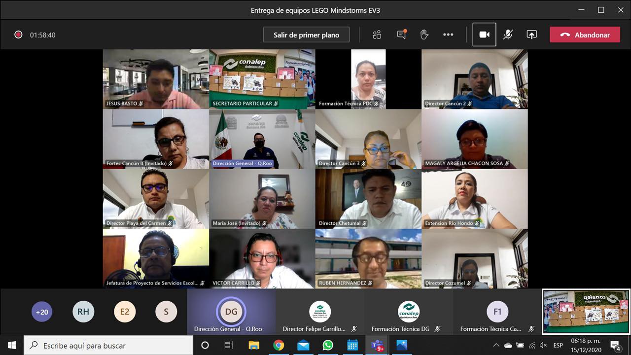 El día de ayer a través de una reunión en línea, el director general del CONALEP Quintana Roo, Aníbal José Montalvo Pérez, hizo entrega simbólica de 73 kits de robótica Mindstorms EV3 de Lego Educación, a los directores y personal académico de los planteles.