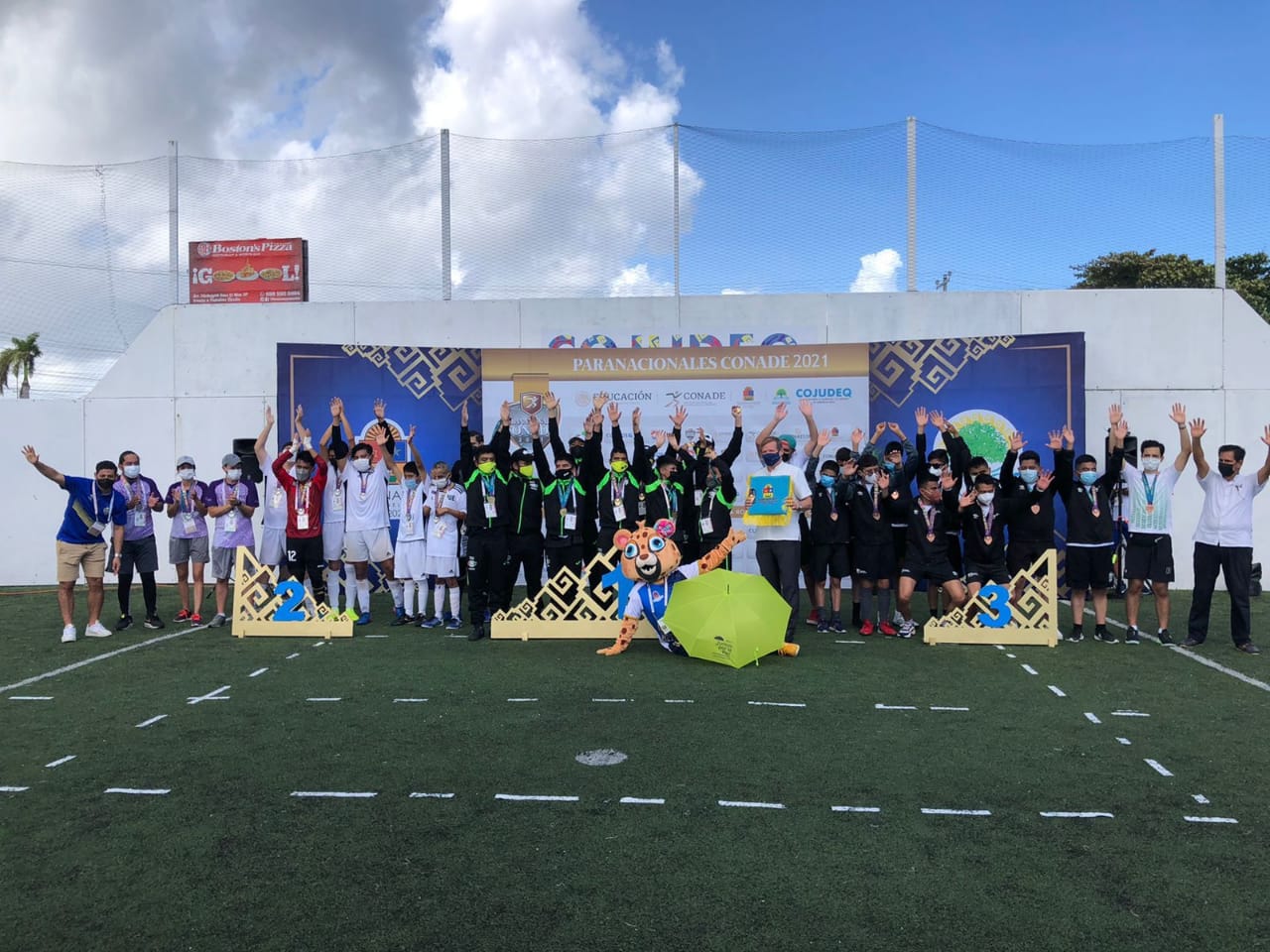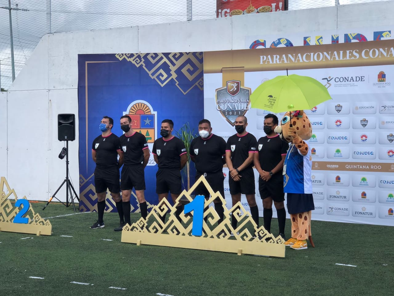 La jornada de la disciplina de fútbol 5 para ciegos llegó a su final en el marco de la ceremonia de premiación en la que estuvieron presentes el ex futbolista profesional, Alejandro Vela coordinador de fútbol de Quintana Roo, Efrain Calderón Amaya de La Salle, “Dequi”, la mascota de la COJUDEQ, entre otros invitados.